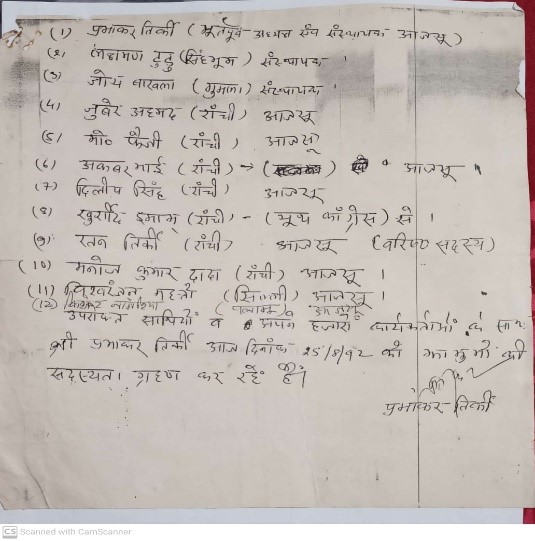 Whoever is aware of the Haitian rebellion against the French colonisers in the late 18th century some way or other must have heard about Sans Souci. Located at the northern mountains of the Republic of Haiti, this palace symbolises the victory of slaves against the colonial masters. It is well known and documented that the palace was made by the great black king Henry Christophe. However, it’s hardly ever asked why the palace was named ‘Sans Souci’.Michel Trouillot in his book Silencing the Past delves deep into the question and found that it might be possible that Henry named his residence after a palace made six decades before his coronation at Postdam by the Prussian king Fredrick the Great. However, he also referred to another Sans Souci – a man who was one of the early rebels against the French colonisers and was allegedly killed by black king Henry Christophe. Nobody knows the exact motive behind naming the palace ‘Sans Souci’, but it is evident from Trouillot’s work that very few people are even concerned about its name. In between this glory of the palace and celebration of grand history, what is lost is the histories of Sans Souci – the man who fiercely fought against the French Army.Every rebellion has its own Sans Souci or Sans Soucis. We hardly listen to them. And when we try to, we get seduced by the provocation of being the representative of silenced voices. We end up imposing histories on the people. The colonial fanaticism for chronological history leads us to put things in order, in continuity – if not in coherence. In this situation, our shares in the production of histories are secured against those whose histories we are seeking.While working to find out the histories of Muslim presence in the Jharkhand andolon (Jharkhand movement), we met several people – sometimes with the motive to get historical accounts, but most of the time to just listen to what they have to say. In this journey, we met Zubair Ahmed, in his late 50s, selling eggs at a small stall near the Jharkhand high court. Known as Zubair Andewala, he is not only a living testimony to Muslims’ presence and activities in the struggle for statehood, but is also the one who acted as a bridge between Adivasi and Moolvasis in the late 1980s in Ranchi.In a neoliberal world where trust deficiency is the norm, Zubair speaks with documents. Though most of the newspaper cuttings where his name was mentioned are now missing, a few books, articles and photographs still carry his legacy. “These are all I have – Yeh mere life ki punji hai (This is the capital of my life),” Zubair told us.He couldn’t understand the importance of these documents until the Arjun Munda government in 2012 formed the ‘Jharkhand Andolonkari Chihnitkaran Ayog’ (Jharkhand Agitator Marking Commission) to identify the ‘andolonkaris’ under pressure from several civil society organisations, in most of which Zubair was also a member. The formation of the Ayog was welcomed, but the conditional clauses made it difficult for him to qualify as a ‘pension seeker’.The criterion was set to accommodate only those who had spent days in jails during the andolon. Those who were detained several times but fortunately got saved from being imprisoned became less freedom fighters! This imposed a graded hierarchy among freedom fighters and made the claims of all those strugglers invalid who kept the movement floating outside the jail.However, last year, Zubair’s name appeared in the Jharkhand State Gazette along with other renowned andolonkaris and undisputed leaders like Shibu Soren and Suraj Mondol. Significantly 40 names of andolonkaris from Ranchi that are found in the Gazette (Gazette No 118, February 26, 2020) contains 16 Muslim names indicating the formidable Muslim presence throughout the Jharkhand statehood movement. This recognition from the state though offered him a sigh of relief; still, he along with several other non-jailed freedom fighters, is waiting for a substantive resolution – pension scheme, government job, health benefit and a permanent house.State Gazette dated February 2020 and Zubair’s name on it.Last year, the commission’s term ended and from among more than 63,000 applications they had identified around 5,000 andolokaris. Claiming that there are several pending applications and the process of identification must go on, the Jharkhand Andolonkari Morcha requested Hemant Soren to reorganise it. Accepting the claims of andolonkaris, the Soren government through the State Gazette No. 327 (June 25, 2021) accepted the request of reorganisation and added the following clauses –Whoever had spent less than three months in jail would get Rs 3500/- per month as pensionWhoever had spent three to six months in jail would get Rs 5,000/- per month as pensionWhoever had spent more than six months in jail would get Rs 7,000/- per month as pensionThe new notification also promises a state government job (Grade III or IV as per the qualification) to one family member or dependent of those who lost their lives or who had become more than 40% disabled during imprisonment. This provision of a government job would also be applicable to those whose family members had participated in the statehood movement (subject to identification).On September 27, Soren government also declared the names of the members of the new commission (Notification 3689/ Home Department) and both the members Narsingh Murmu and Bhubneshwar Mahato have been warmly welcomed by Jharkhand Andolonkari Morcha.Sailendra Mahato’s letter to the Hemant Soren governmentFormer MP and renowned leader of the movement, Sailendra Mahato also welcomed the decision of deploying former freedom fighters in the Ayog. But his letter to Hemant Soren dated September 30 clearly seeks pension for all those who (irrespective of jail terms) participated in the andolon. The hierarchical division of imprisoned and non-imprisoned andolonkaris has become a major point 